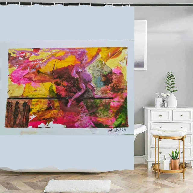 Badeforhæng / Bruseforhæng med dynamisk energi og kunstnerisk udtryk