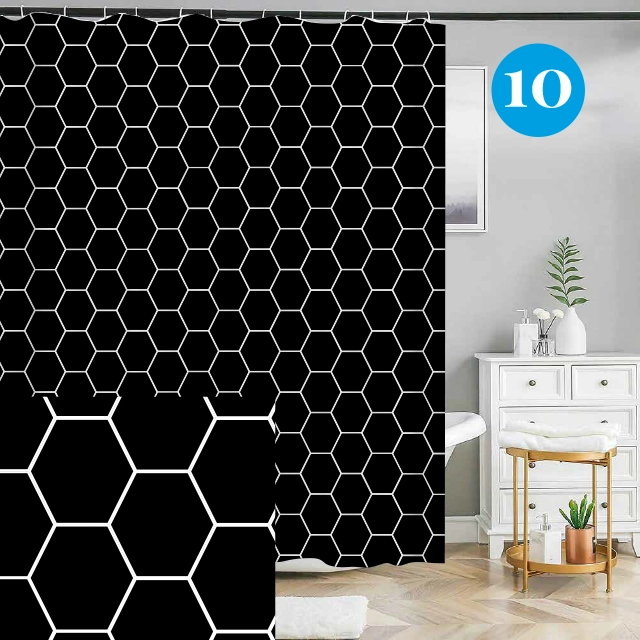 Klassisk og moderne badeforhæng med hexagonalt mønster